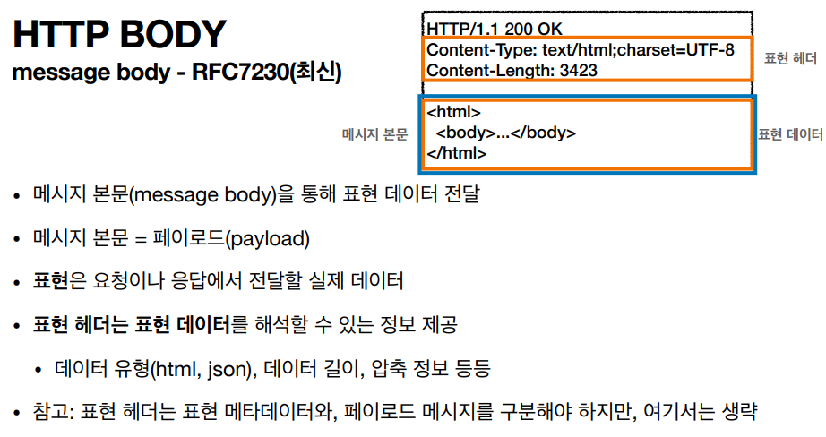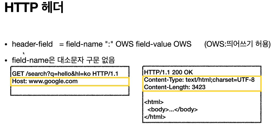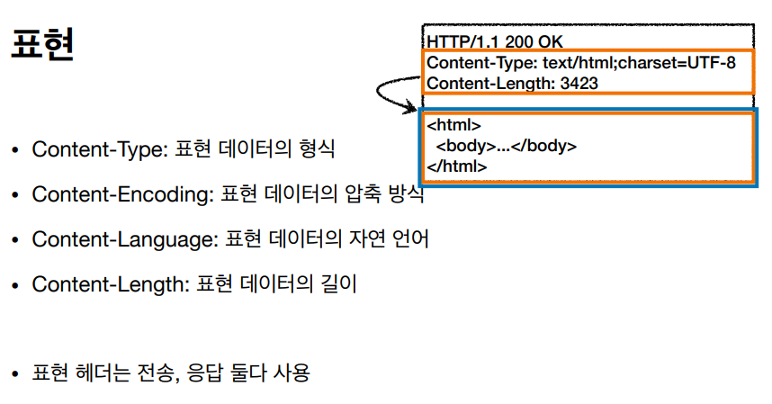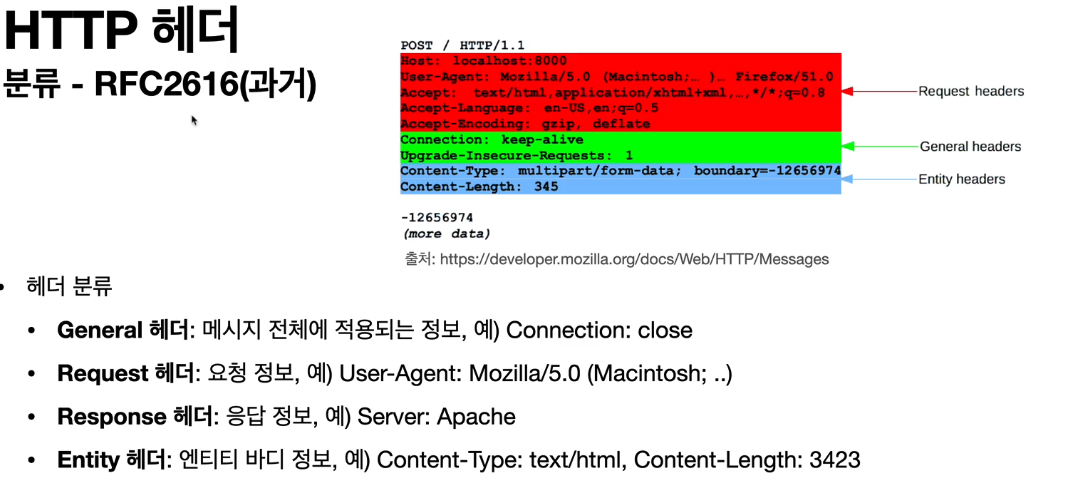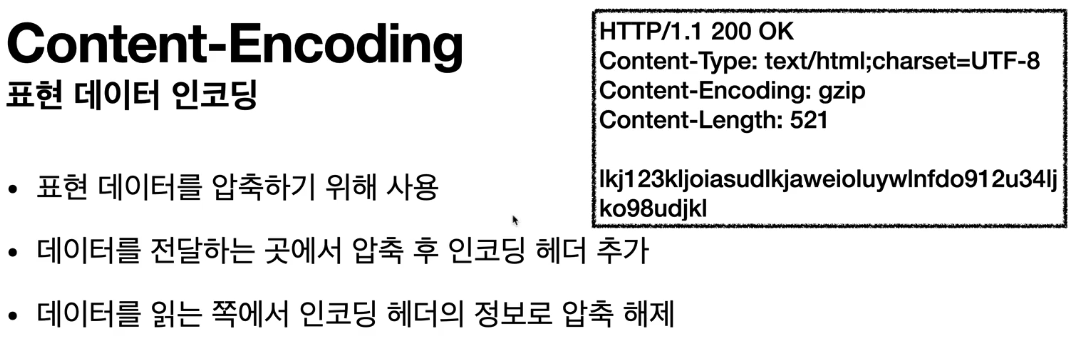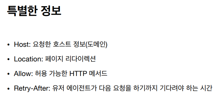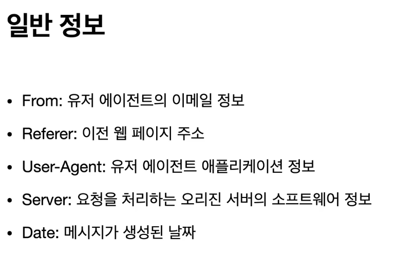예) 메시지 바디의 내용, 메시지 바디의 크기, 압축, 인증, 요청 클라이언트, 서버 정보, 캐시 관리 정보...
