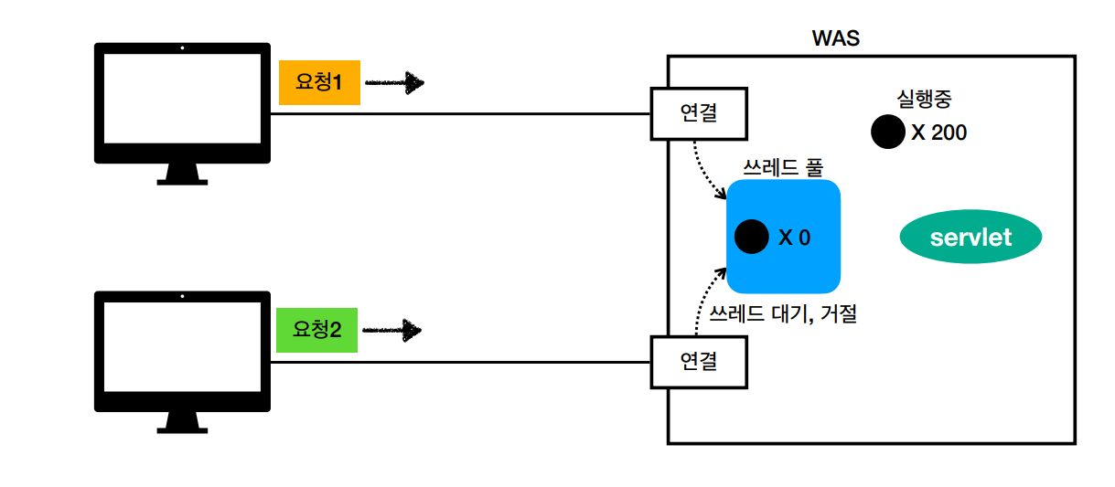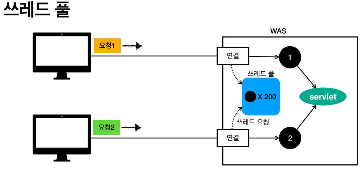 쓰레드 풀 - WAS는 위의 문제를 해결하기 위해 쓰레드풀을 사용.