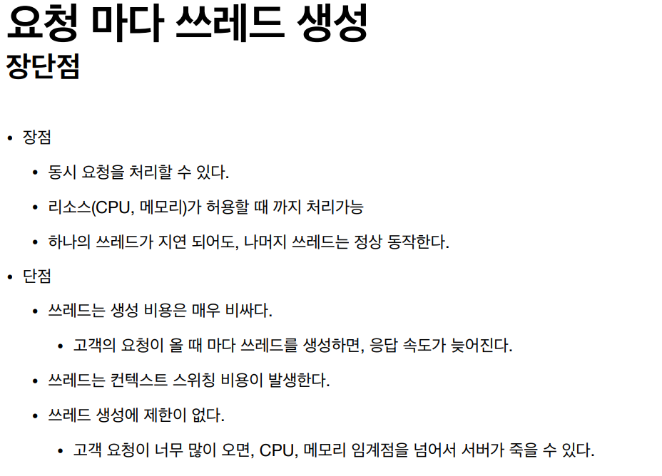 미리 쓰레드풀을 생성해서 쓰레드를 만들어놓고 대기한다.